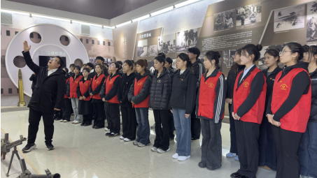 发言环节结束后,王婧绮带领全体人员重温入团誓词。铿锵有力的誓言回荡在陵园上空,彰显着青年学子对革命先烈的崇高敬意,以及对初心使命的坚定坚守。